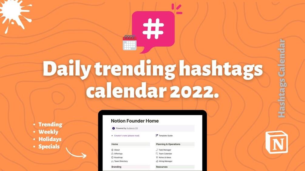 Notion Hashtags Calendar 2023: Social Media